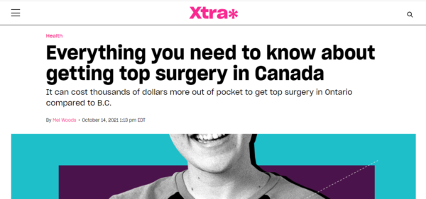 Journalist Mel Woods recent published an article with Xtra, “Everything you need to know about getting top surgery in Canada,” which looks at the disparities across Canada for trans people seeking top surgery.