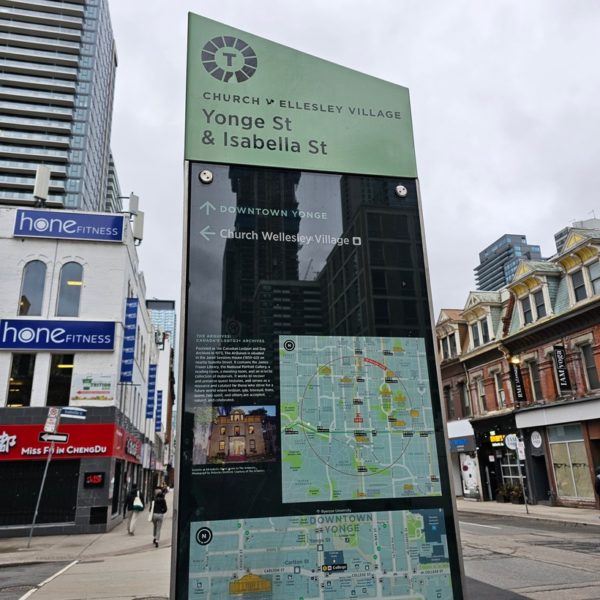 In 2019, I was hired by Heritage Toronto to write display copy about The ArQuives for a historical pillar and also write a longer history for their files. Then I kind of forgot about it. Yesterday I noticed it as I was walking to work and thought I’d snap a photo.